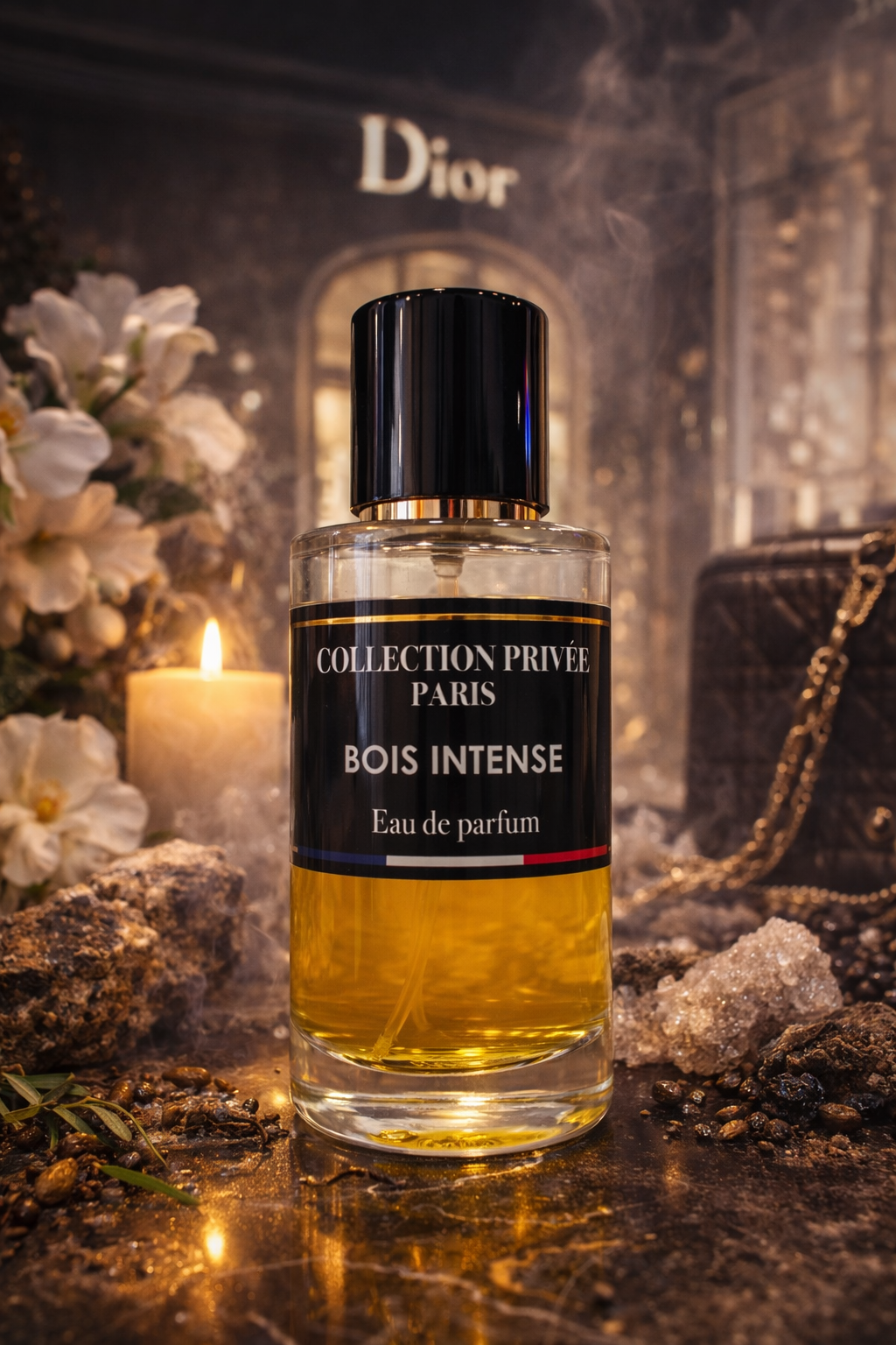 Bois Intense – Collection Privée Paris : Parfum boisé-ambré à la signature profonde et sophistiquée, où des notes aromatiques et légèrement épicées ouvrent la voie à un cœur de bois nobles chaleureux, enveloppé d’accents ambrés et résineux. Le fond, musqué et subtilement vanillé, prolonge la matière avec une sensation dense, une élégance racée et un sillage intense, sec et durable.