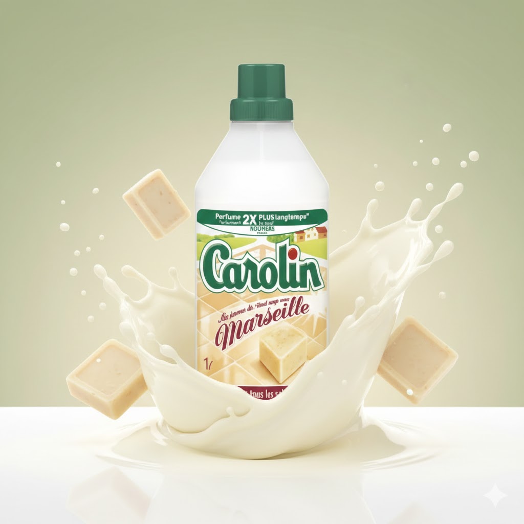 Carolin au savon de Marseille – 1L: Nettoie à fond et dégraisse tous les types de sols sans rincer et sans laisser de traces. Sa formule parfume délicatement votre intérieur 2X plus longtemps*. *par rapport à l’ancienne formule. Etude réalisée en interne après dilution d’un bouchon et demi. CAROLIN SOLS AU SAVON DE MARSEILLE PARFUME 2X PLUS LONGTEMPS 1L