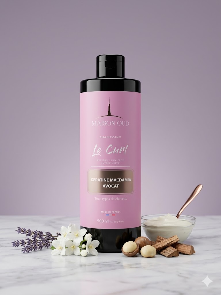Sublimez vos boucles avec Le Curl de Maison Oud, un shampoing spécialement conçu pour nourrir, définir et discipliner les cheveux ondulés, bouclés ou frisés.