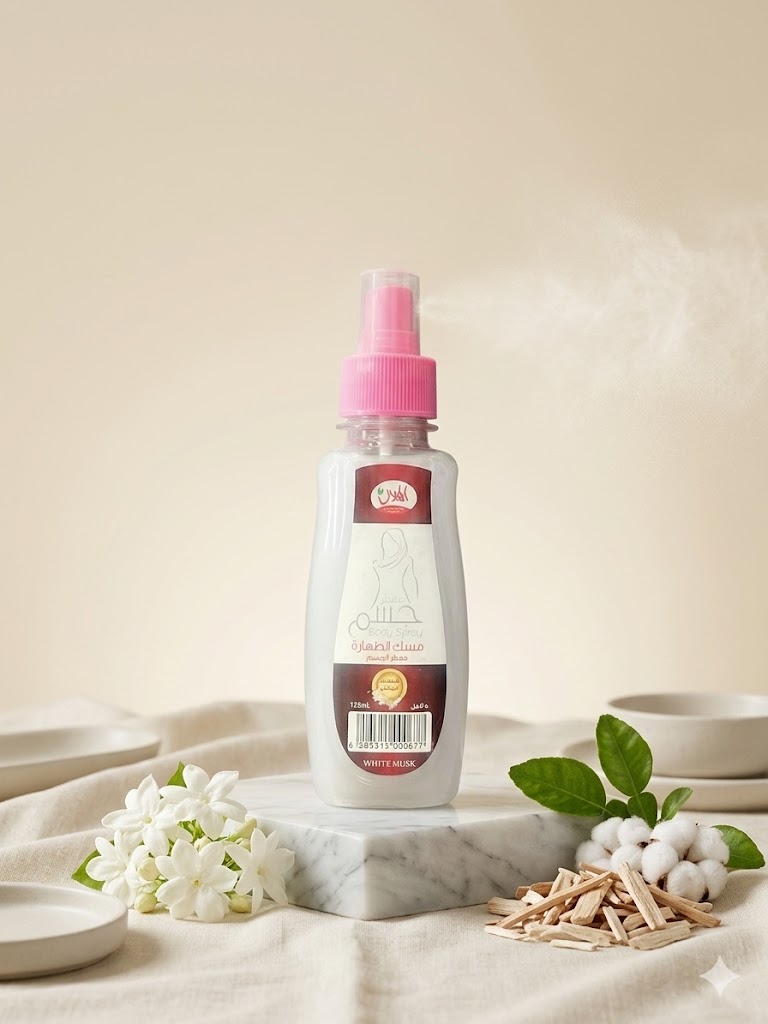 Musc Tahara loiquide sous forme de spray pour parfumer le corps et vêtement, senteur musc blanc.