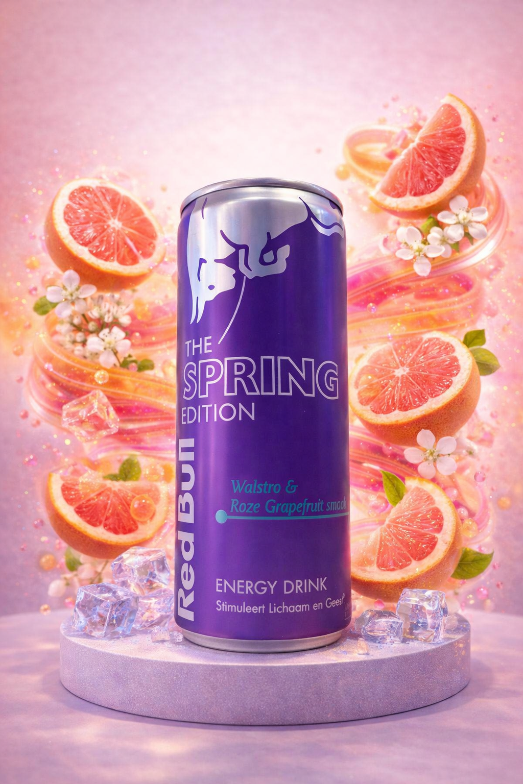 Red Bull Spring Edition est une boisson énergisante associant des notes de woodruff (aspérule odorante) et de pamplemousse rose. Cette combinaison offre un profil aromatique original et équilibré, en format 250 ml.