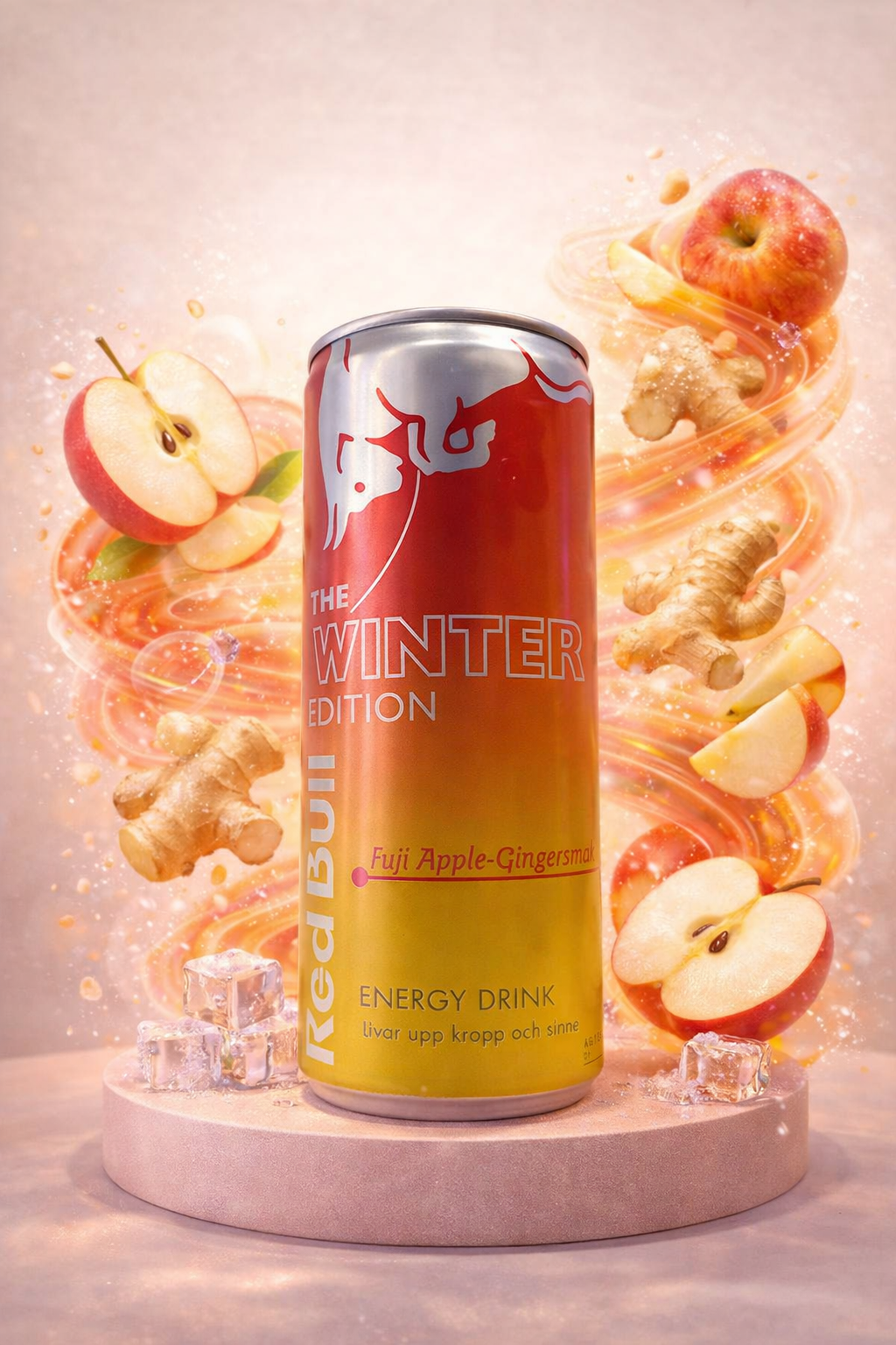 Red Bull Winter Edition est une boisson énergisante à la saveur associant la pomme Fuji et le gingembre. Elle propose un profil aromatique fruité avec une note légèrement épicée. Ce produit est conditionné en canette de 250 ml et se consomme de préférence bien frais.