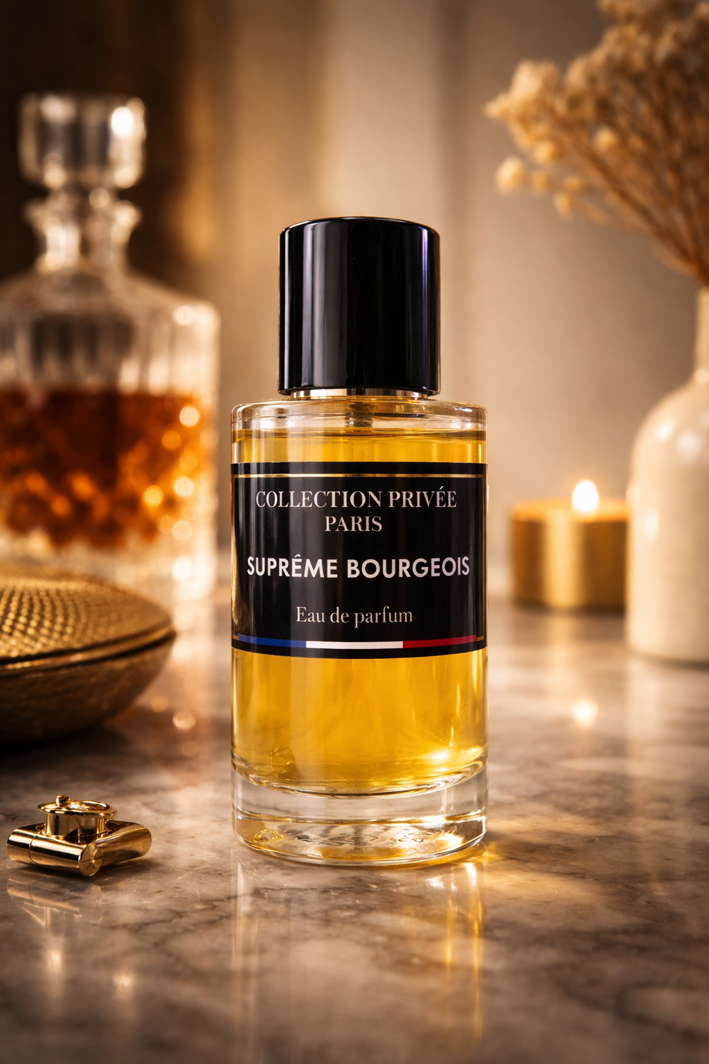 Suprême Bourgeois – Collection Privée Paris : Parfum boisé-ambré au style chic et affirmé, où des notes fraîches légèrement épicées ouvrent sur un cœur élégant mêlant bois nobles et touches aromatiques, avant de s’ancrer dans un fond ambré-musqué subtilement vanillé. Une signature raffinée, taillée pour une sensation de classe instantanée, une présence distinguée et un sillage profond, propre et durable.
